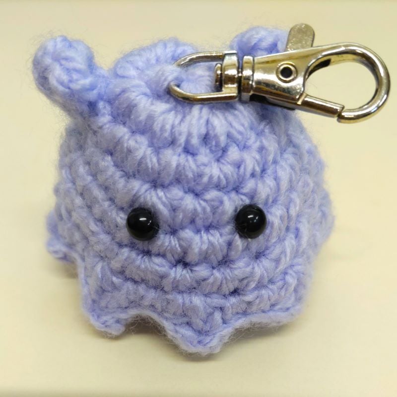 メンダコのバックチャーム(ラベンダー)です。愛らしい編みぐるみスタイルが特徴で、海の中のユニークな生き物が好きな方や、日常のファッションに遊び心を加えたい方にぴったり!バッグやリュックに取り付けることで、ちょっとしたアクセントになり、お出かけの楽しさを倍増させてくれます。