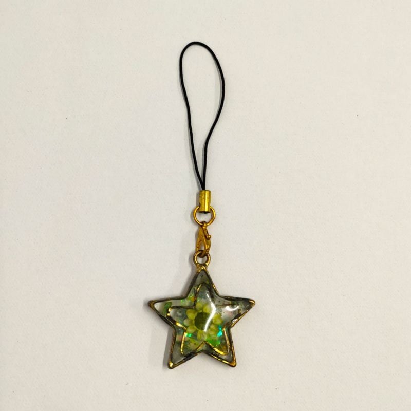 お花入り星型ストラップは、ドライフラワー入りの美しい星型のデザインが特徴のストラップです。このストラップを使うことで、あなたの日常に自然の魅力をもたらし、さりげなく華やかなアクセントを加えます。 自分用にはもちろん、友人や家族への心温まるプレゼントとしても喜ばれるアイテムです。 サイズ:縦約10cm(星部分約3cm)、横約3.5cm、重さ約6g。