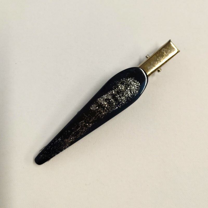 紺色のラメ入りヘアクリップは、シックな紺色に輝くラメが添加されたおしゃれなヘアクリップです。このヘアクリップを使うことで、あなたの髪に華やかで特別なアクセントを加え、日常のスタイルを格上げします。 自分用にはもちろん、大切な友人や家族への心のこもった贈り物としても喜ばれるアイテムです。 サイズ:約9.5cm(クリップ部分含む)、重さ約9g。