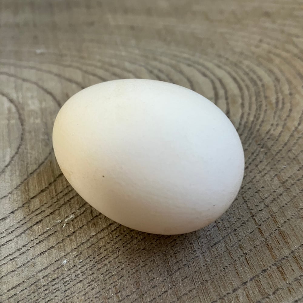 白色のチャボの卵(有精卵)です。